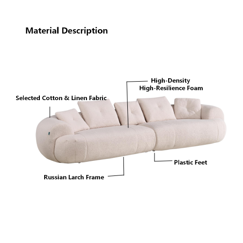 C'è qualcosa di speciale in questo divano curvo: la sua silhouette morbida e avvolgente trasforma i pomeriggi pigri e le serate di cinema in piccoli momenti di comfort. Scegli il divano in tessuto di lino traspirante e antimacchia per famiglia con animali domestici se hai una famiglia impegnata, oppure opta per la pelle primo fiore per dare al tuo spazio un aspetto raffinato e raffinato. Imbottito con schiuma 60D ad alta resilienza, affonda delicatamente quando ti siedi, senza mai appiattirsi, e si abbina magnificamente con le tue eleganti poltrone imbottite per l'arredamento del soggiorno, indipendentemente dalla disposizione esistente.